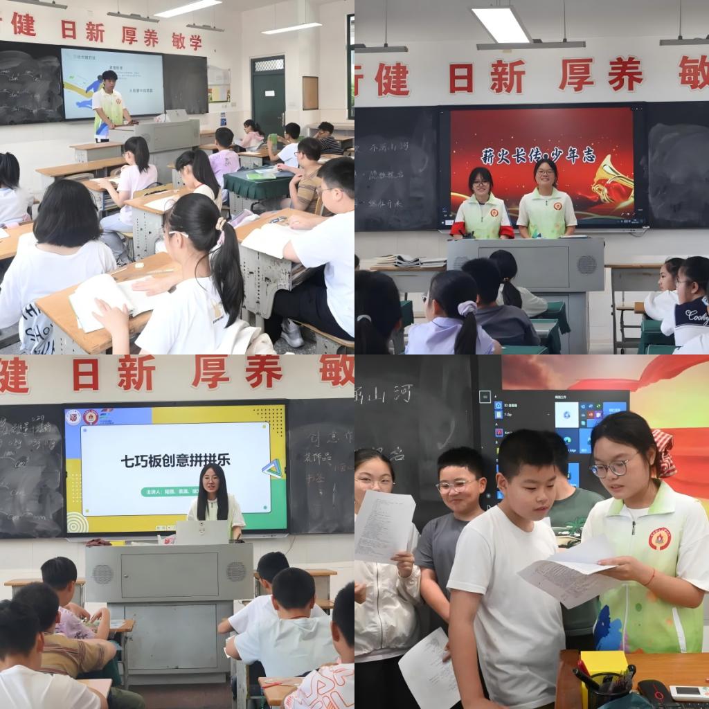 思维破茧成蝶,智慧点亮星河。徐文轩、陆翎同学以回形针为灵感,启发孩子们发现回形针的多种用法,并鼓励他们动手实践,将回形针制作成一件件小工艺品。袁满同学则为大家带来“七巧板拼拼乐”手工制作课程。带领同学们利用有限的拼图拼成无限的图案,激发了孩子们的创造力。经过此次创新思维课程,孩子们纷纷表示他们的思维得到了启发。