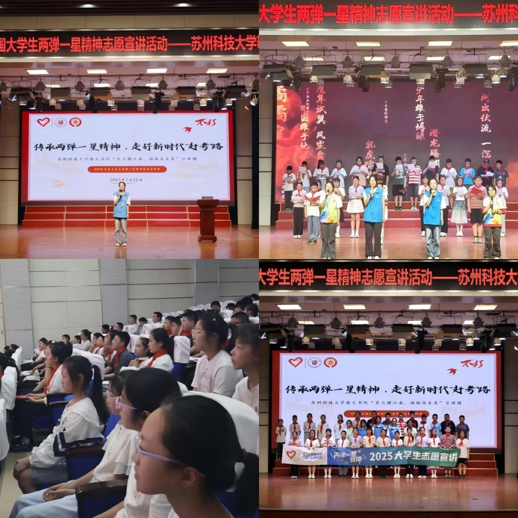 2025年全国大学生“两弹一星”精神志愿宣讲团队——敬文书院“星火耀江南,强核筑未来”宣讲团领队洪星儿同学面向马塘小学200余名师生展开宣讲。从戈壁滩上的帐篷实验室到深夜不灭的计算灯光,从“干惊天动地事,做隐姓埋名人”的誓言到“用算盘算出原子弹数据”的执着,一个个鲜活的故事,让孩子们眼中闪烁起敬佩的光芒。