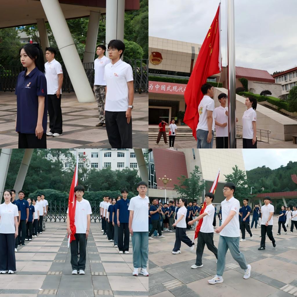 晨曦微露,朝阳初升,各高校师生齐聚国旗下整齐列队。在爱国主义教育主题升旗仪式上,实践团成员马恩飞同学担任擎旗手,曹宇同学担任国旗护卫队队员。他们以挺拔的身姿守护在国旗两侧,用青春的朝气诠释着对国旗的敬仰,成为晨光中一道肃穆而亮丽的风景线。
