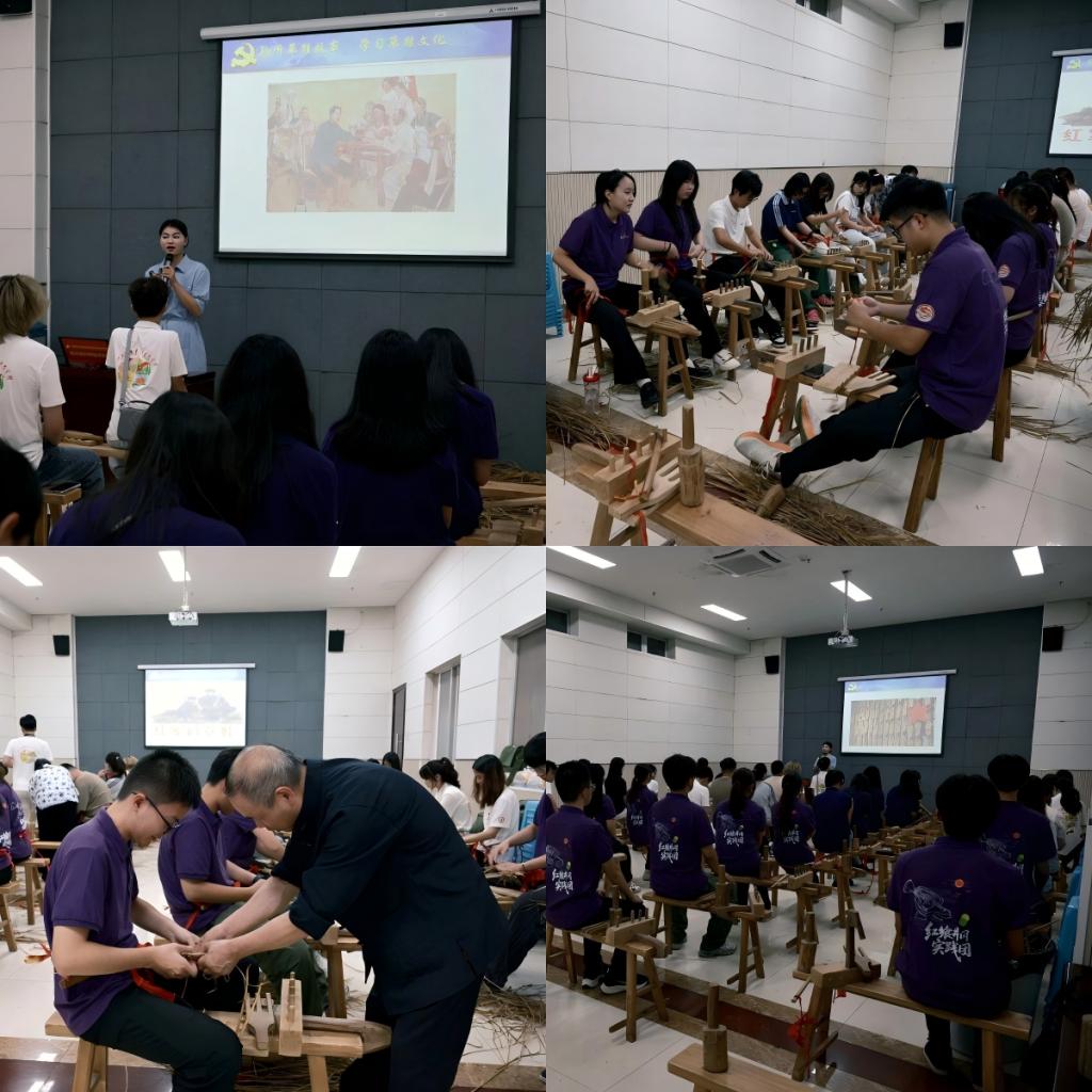 当暮色为井冈山披上朦胧纱衣,实践团的活动转入一场与历史对话的体验。在基地老师的示范下,“学编红军草鞋”活动温情启幕。枯黄的稻草在成员们手中几经搓捻,化作坚韧的草绳;交错的经纬在指尖反复穿梭,渐渐勾勒出草鞋的雏形。指尖的酸痛里,大家仿佛触摸到了当年红军将士的艰辛。草绳缠绕间,革命先辈自力更生的智慧与百折不挠的信念,如暖流般淌进心间。