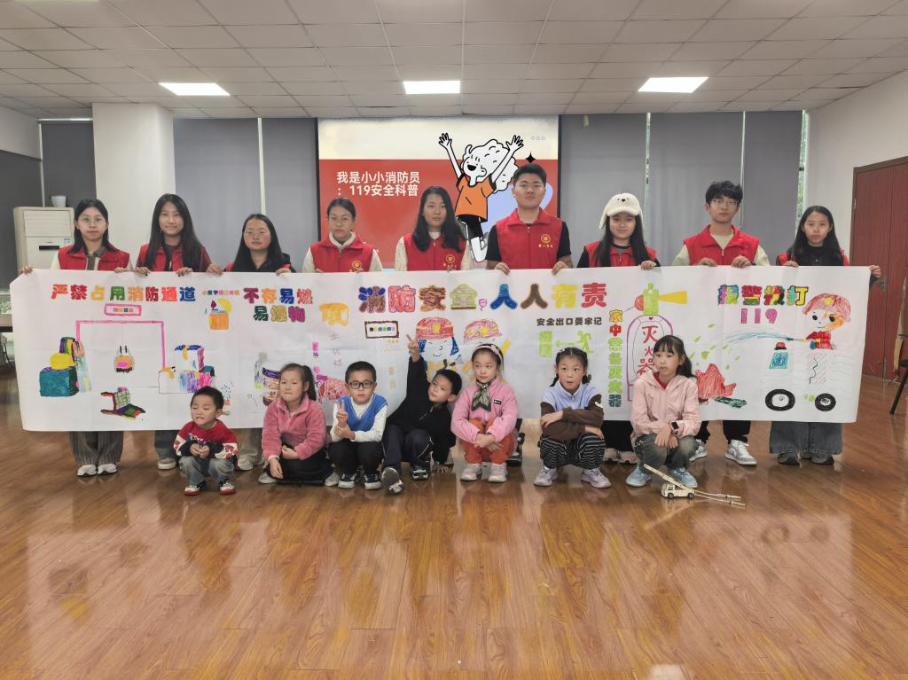 近年来,城市化进程加快,居民社区规模不断扩大,人口密集度增加,火灾事故频发成为社会安全问题的突出隐患。火灾不仅造成人员伤亡和财产损失,还对社会稳定和居民生活造成严重影响。正值全国消防日,为了提升社区儿童的消防安全意识,减少安全隐患,敬文书院青年志愿者协会实践部领队张栗豪,带领志愿者团队于近日前往学府社区开展了"我是小小消防员:119安全科普日"活动。