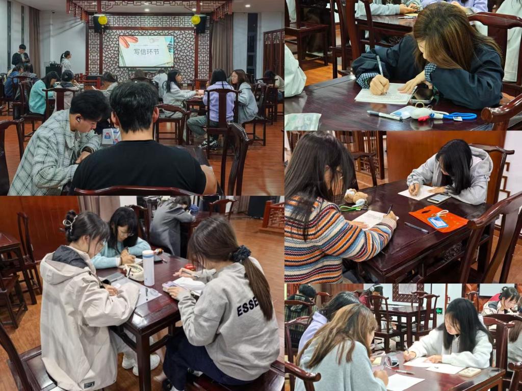 活动秉承敬文书院“厚德博学,励志敦行”的院训,坚持“以情暖心,以文化人”的活动宗旨。在快节奏的学习生活中,大家难得放慢脚步,在柔和灯光与舒缓音乐的交织中,伏案执笔。写给父母的信里,既有对三餐冷暖的叮嘱,也有对岁月风霜的心疼;写给师长的笔墨下注满成长路上的感恩和敬意,寄给朋友的的信笺上传递着互诉心声的青春情谊。一笔一画间,是心底最纯粹的珍藏,一言一语中,是情感最真挚的沉淀,成为这个季节最动人的注脚。