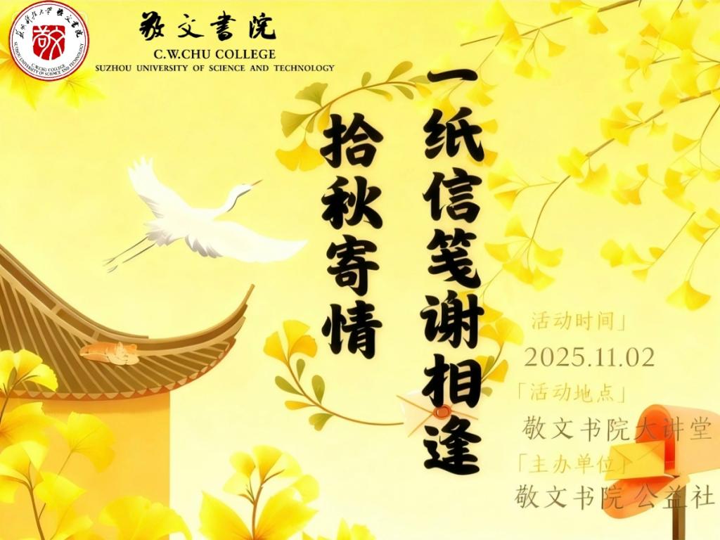 当金黄落叶铺满校园小径,深秋的凉意便被一份滚烫的心意悄悄驱散。11月初,敬文书院公益社举办的“拾秋寄情:一纸信筏谢相逢”感恩书信活动如期而至。
