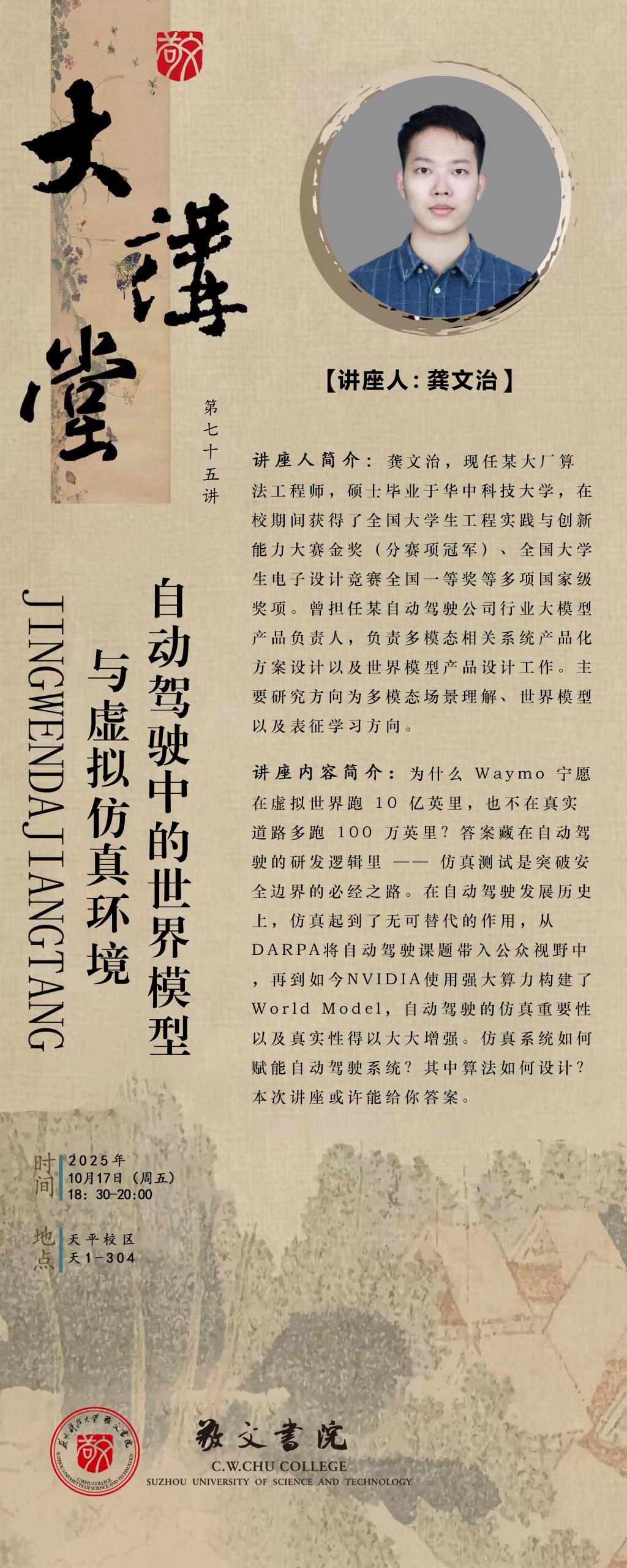 【敬文大讲堂】第七十五讲:自动驾驶中的世界模型与虚拟仿真环境