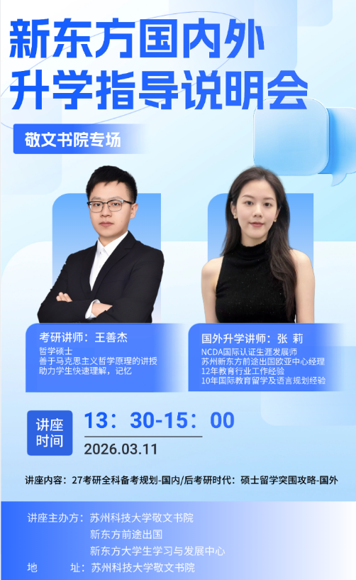 【敬文大讲堂】第八十一讲:新东方国内外升学指导说明会
