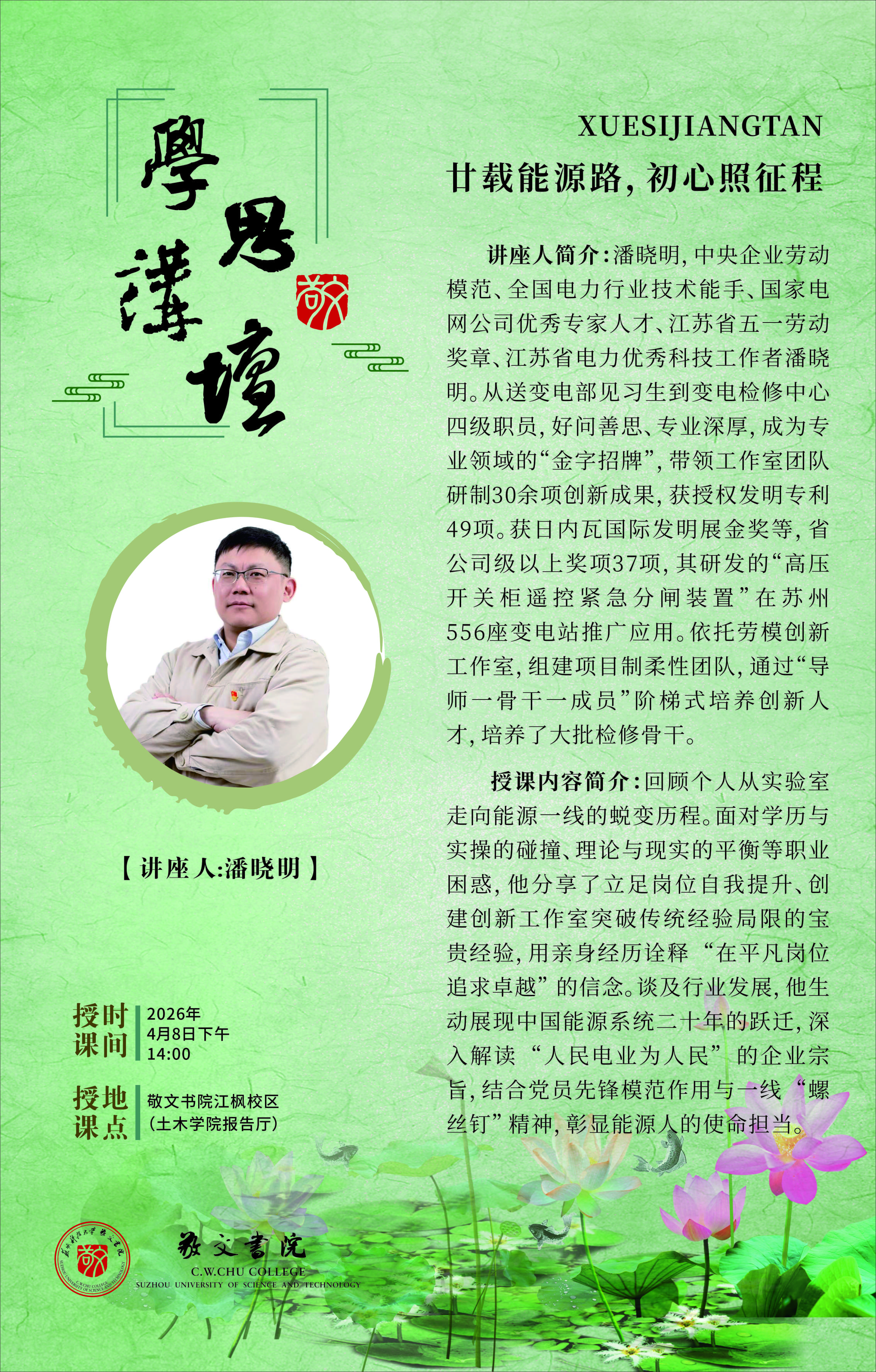 地点:敬文书院江枫校区(土木学院报告厅)