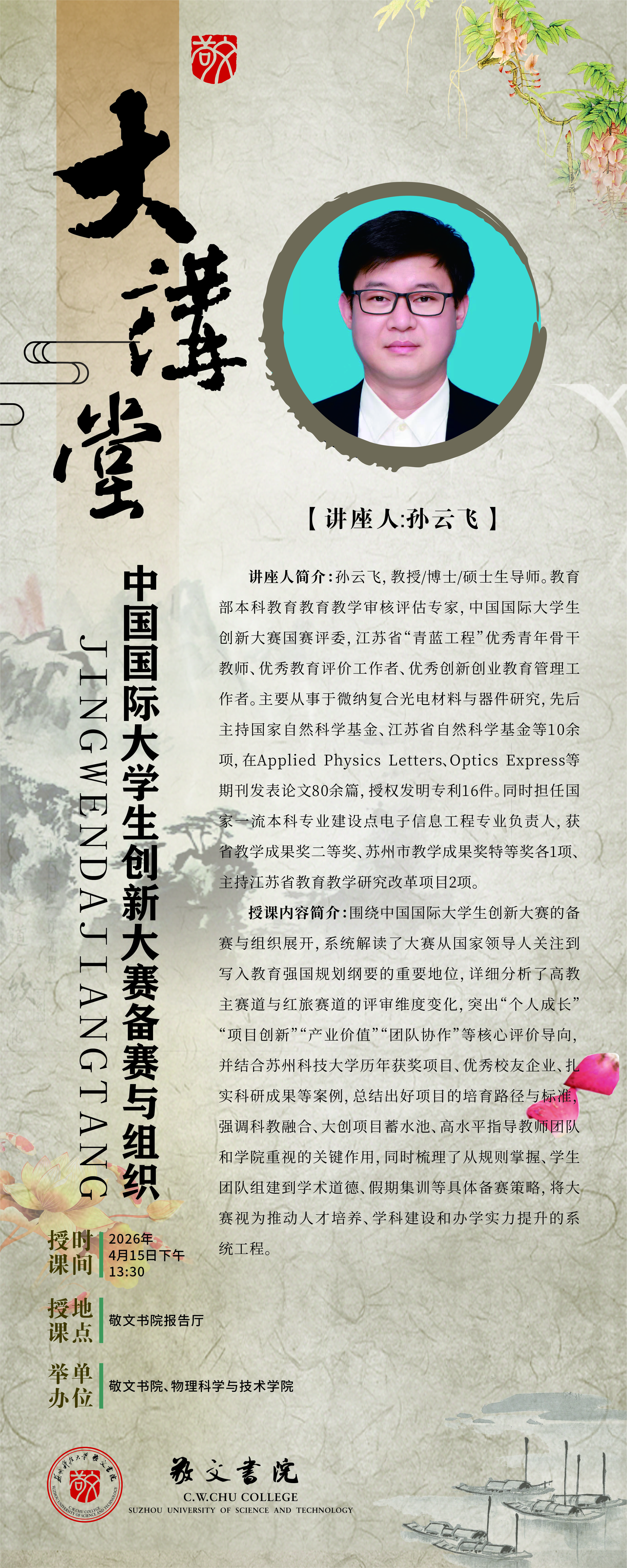 【敬文大讲堂】第八十三讲:中国国际大学生创新大赛备赛与组织